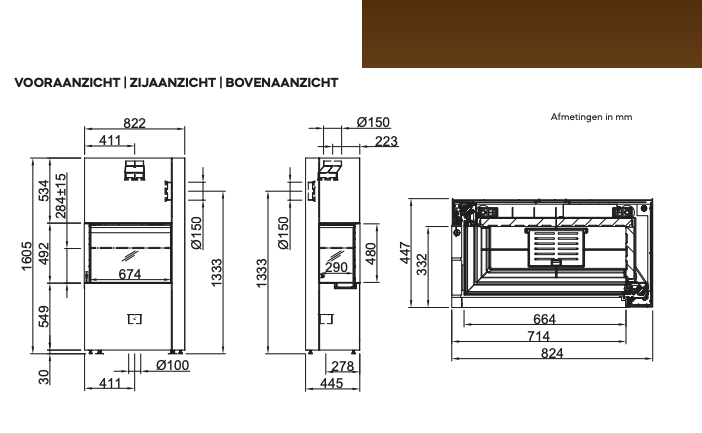 De Zirkon kan direct tegen de muur geplaatst worden, een veiligheidsafstand aan de achterkant is niet nodig. Door de uitzonderlijk geringe inbouwdiepte en de smalle, L-vormige ruiten ontstaat een slank toestel dat toch een verrassend breed vuurpanorama laat zien.